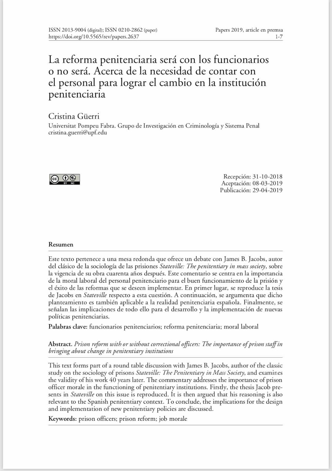 Blog obert a les idees, opinions, debats, consulta i reflexions dels qui assumeixen la presó com un treball, una eina, una necessitat, una vocació, un anacronisme, un futur o un problema. Un espai que parla de presons intentant millorar-les a través del coneixement, la crítica o el qüestionament, sense morbositat, mites, ni fantasies.