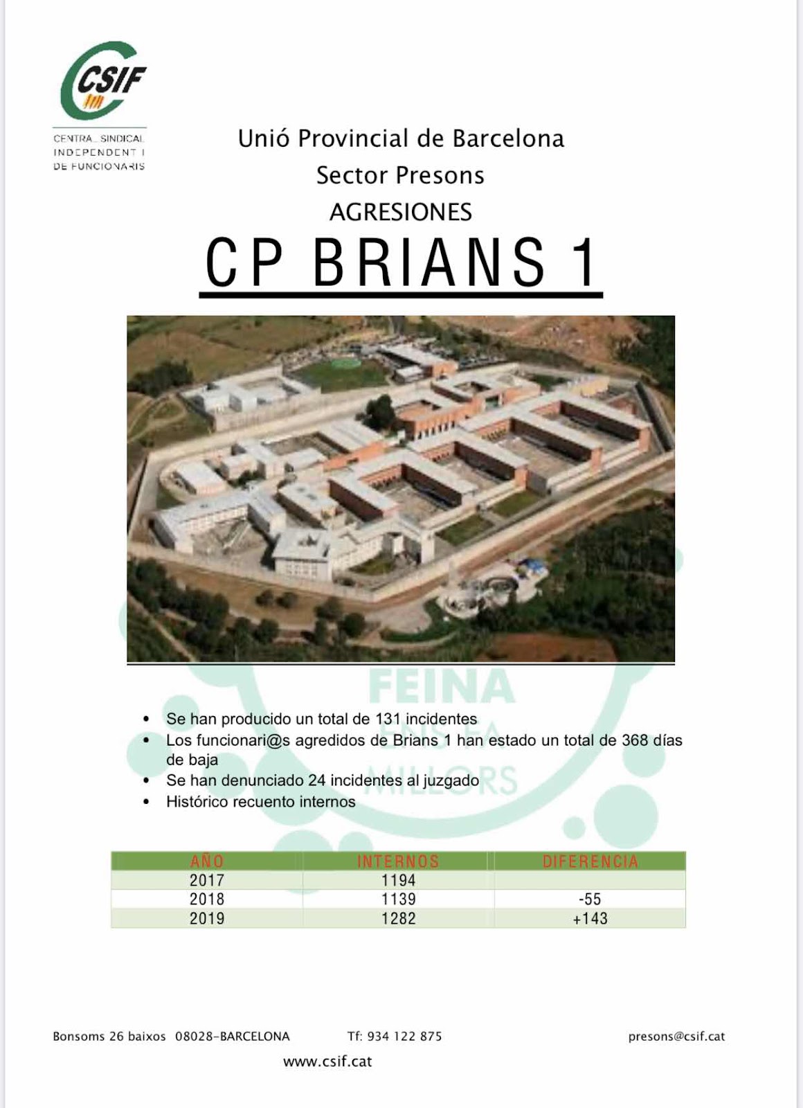 Comparativa que ens envia CSI·F de les agressions rebudes a Brians-1: